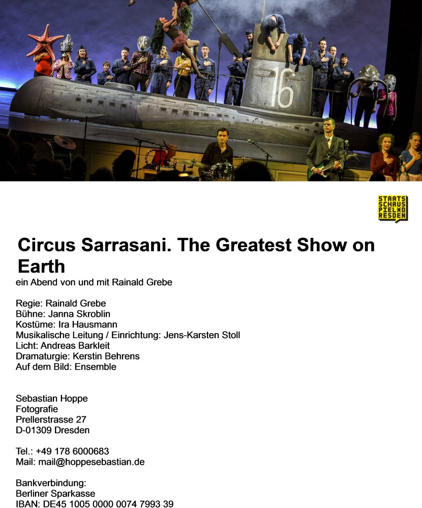 „Circus Sarrasani. The Greatest Show On Earth“ von und mit Rainald Grebe, Uraufführung am Staatsschauspiel Dresden am 26. Mai 2018